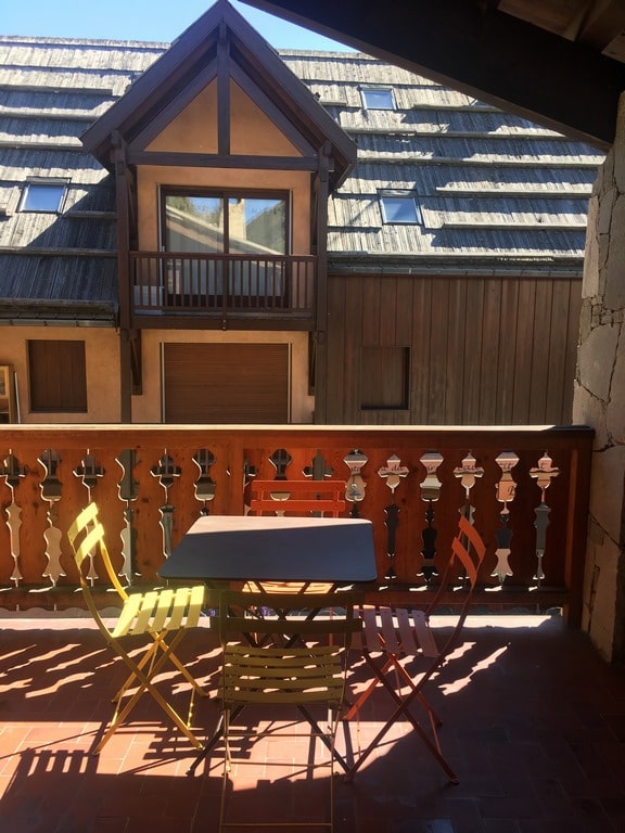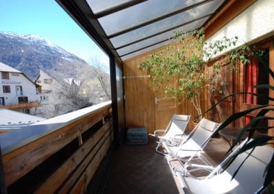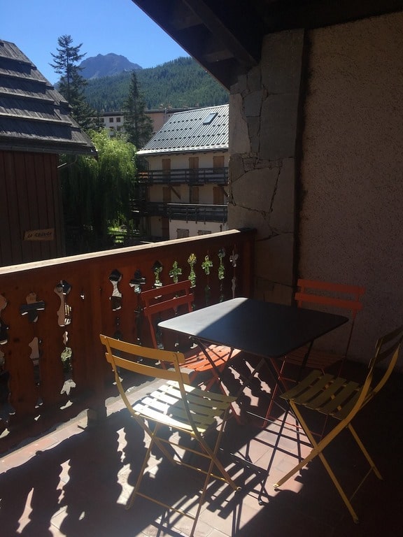 Appartement spacieux et lumineux tout équipé. Une loggia Sud-Ouest, une véranda sur la rivière la Guisane, une cheminée centrale et un petit billard américain.