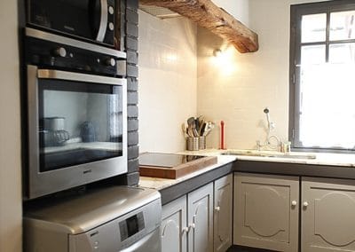 Cuisine séparée avec four traditionnel, four M-O, lave vaisselle, machine à café traditionnelle, machine Nespresso, grille pain, bouilloire…
