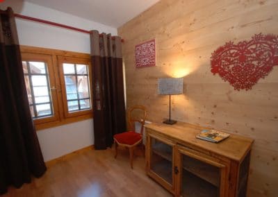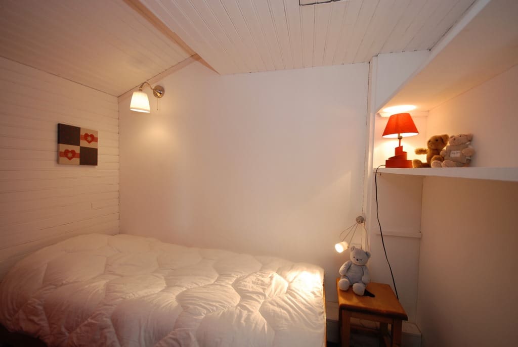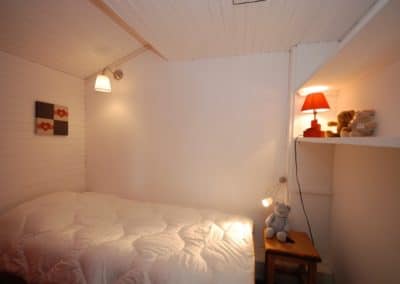 Chambre 2 bis : fermée par une porte coulissante avec 2 couchages en 80×190 en lit gigogne pouvant accueillir 2 enfants ou 1 couple