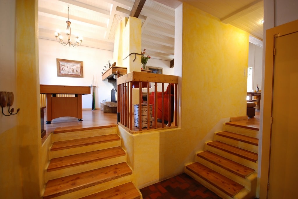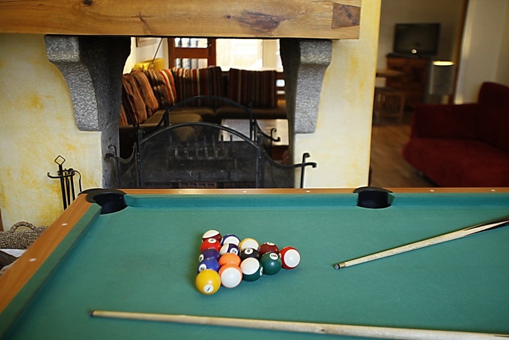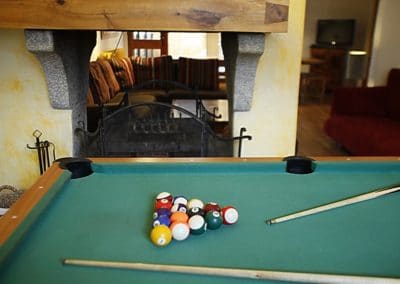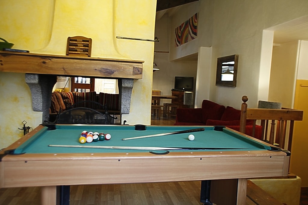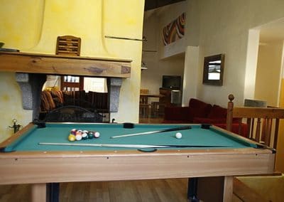 - Salle à manger de 14 couverts, salon avec canapé d’angle et canapé en vis à vis, cheminée centrale foyer ouvert des deux cotés séparant le salon du petit billard américain, téléviseur écran plat 80cm, lecteur DVD et chaîne HIFI compatible IPOD