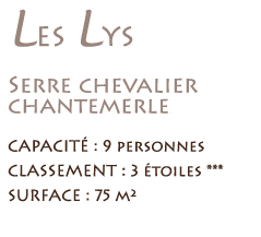 Descriptif de l’appartement les Lys à Chantemerle, Serre Chevalier