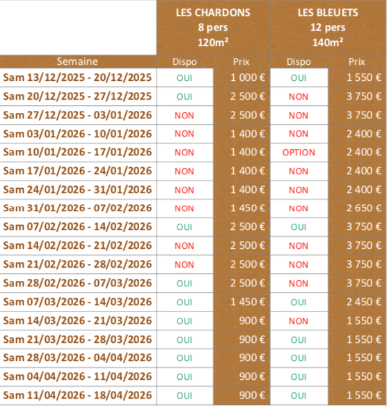 Retour du contrat sous 10 jours, signé et accompagné d’un acompte de 25% du montant total de la location.
